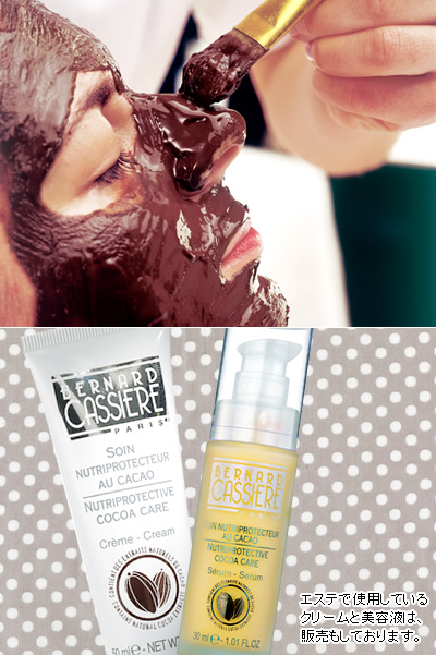 PURE WOODSのフェイシャルケアの「チョコフォンデュケア」はフランスエステブランド「ベルナール カシエール」とイタリアのチョコラティエのコラボで出来たエステ用の食べられるチョトレートパックです。
