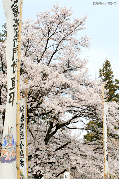 60本のソメイヨシノやエドヒガンザクラなどが、県の文化財に指定されている三門などをバックに咲き誇ります。