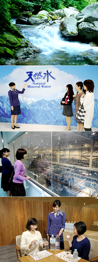 見学後は、試飲会場で「サントリー天然水(南アルプス)」の試飲をお楽しみいただけます。ミネラルウォーターの比較試飲を通して、上手な使い方、楽しみ方もお教えします。