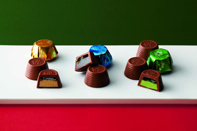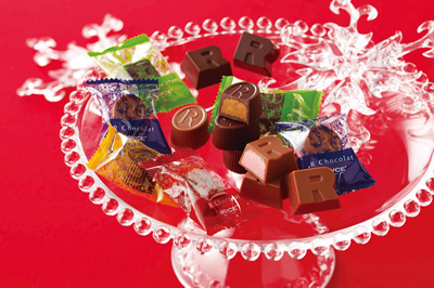 ナッツやフルーツ味のクリームなど、ひと粒ひと粒にさまざまな材料を詰めてつくられる、贅沢なショコラ。高級感のあるチョコレートをもっと気軽に楽しめるよう、個包装で袋詰めというカジュアルなスタイルにしました。ロイズの頭文字“R”をモチーフにした2つのカタチで、ジャンドゥーヤ、ストロベリー、ミルクココア、レモンと4種類のおいしさを楽しめます。