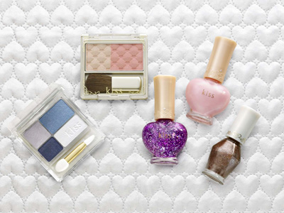 ●キス アイプリズムグラデーション 新色 1色 ¥1,600(税込¥1,680)/立体感をつくるグラデーションときらめきで魅せるアイカラーパレット●キス ピュアブルームチークス 新色 1色 ¥1,400(税込¥1,470)/2色をブレンドしてピュアな頬色を演出するチークカラー●キス ネイルエナメルR 新色 2色 各¥600(税込¥630)/指先を演出するロマンティックなネイルカラー●キス ネイルデコレーション 新色 1色 各¥600(税込¥630)/ネイルアートを思いのままに楽しめる極細ブラシのネイルカラー
