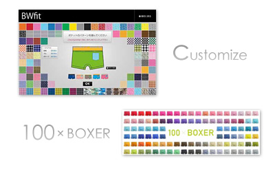 100色のボディ、100種類の腰ゴム、100種類のポケットからお客様に好みの色、デザインを選んでいただき「 自分だけ 」のオリジナルパンツが作れます。