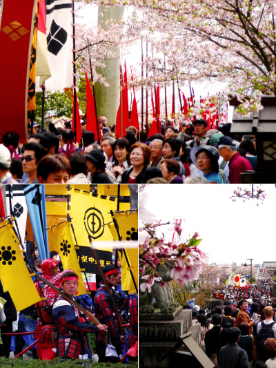 毎年4月12日(信玄公の命日)に行われている例大祭では、桜並木の下を黄金のお神輿とそれに続く24将の騎馬行列が桜並木を通ります。