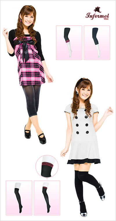 椿姫彩菜が 女性の幸せをプロデュース 椿姫彩菜が大好きなピンクとハートにこだわったレッグウェアブランド「Informel (アンフォルメル)」が誕生! 椿姫彩菜が商品開発から企画に携わり、女性の幸せをプロデュースするというコンセプトのもとに生まれました。 可愛さ、可憐さをさりげなくアピールし、個性をプチ主張できる、何気ないディテールまでこだわったレッグウェアブランドです。 Informel (アンフォルメル) ■デニムタイプのレギンス \2,100(予定) 全4タイプ ■ハイソックス&ニーハイ \525(税込)/\630(税込) 全4タイプ