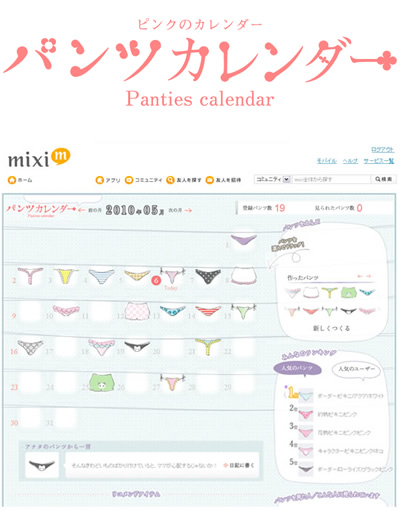 女性必見!イマージュが、アパレル通販初のmixiアプリ、「パンツカレンダー」(PC版)を