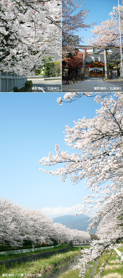 JR甲府駅北口から武田通りと護国神社から県立こどもの国にかけての愛宕山スカイラインには約1000本の桜並木があり、桜のトンネルのように咲き誇ります。また4月5日には護国神社春季例大祭も行われ、参拝者や花見を楽しむお客さんで賑わいをみせます。
