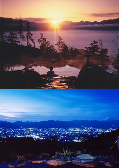 茜色天空の貸切露天風呂に感動!霊峰富士と地上の銀河を眺める幻想的な貸切露天風呂「宿泊1組50分無料」。