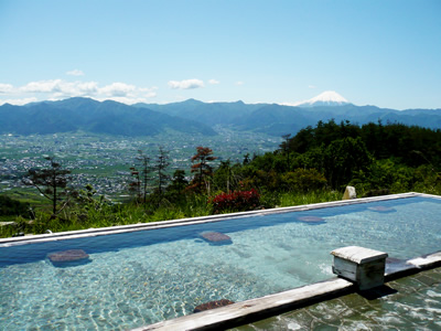 右手に富士山、左手に大菩薩嶺を望み、眼下に甲府盆地東部を見下ろす雄大な眺望が自慢です。