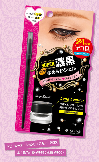 目元を強調したしっかりメイクを楽しむ人のためのヘビーローテーションシリーズから、とろけるようなつけ心地で、ひと塗りでしっかり発色するクリームタイプのチークと、美しい発色とツヤ感を長時間キープするリップグロス、なめらかな描き心地でハネも曲線も自由自在に描けるジェルアイライナーが、伊勢半より新発売。